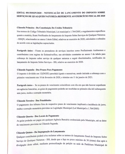 O Departamento de Tributação da Prefeitura de Colíder está enviando aos endereços dos contribuintes as guias referentes ao exercício de 2020 do Imposto Sobre Serviços de Qualquer Natureza (ISSQN).