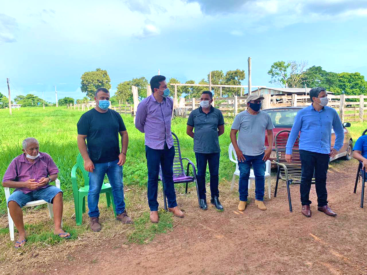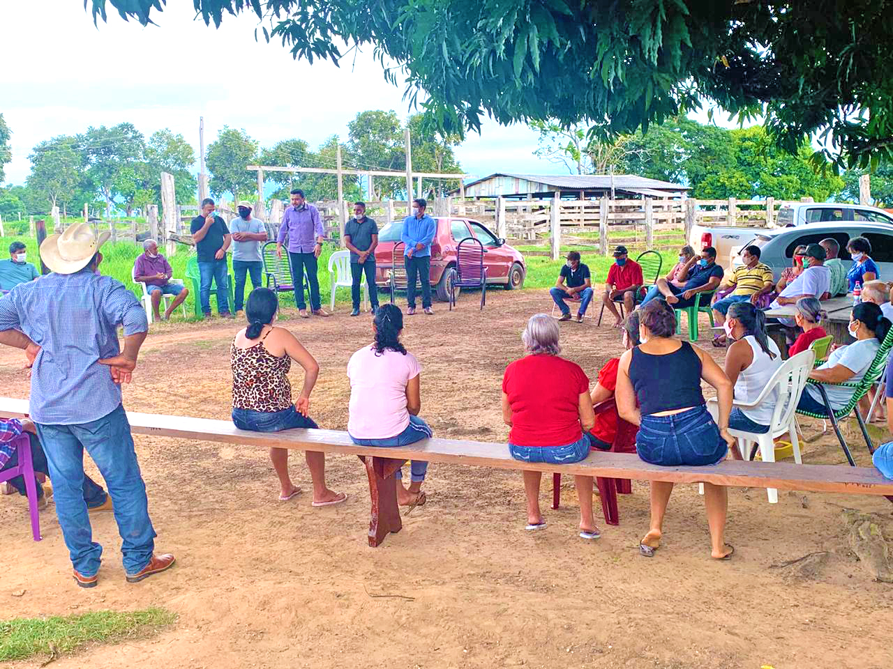 O prefeito Municipal, Hemerson Máximo, Maninho e o vice-prefeito Valmir Teixeira, na companhia dos secretários de Infraestrutura Francisco Robério Cavalcante, de agricultura Benedito Brito e do vereador Euler Borges, estiveram presentes na comunidade Novo Belém na Gleba Novo México.
