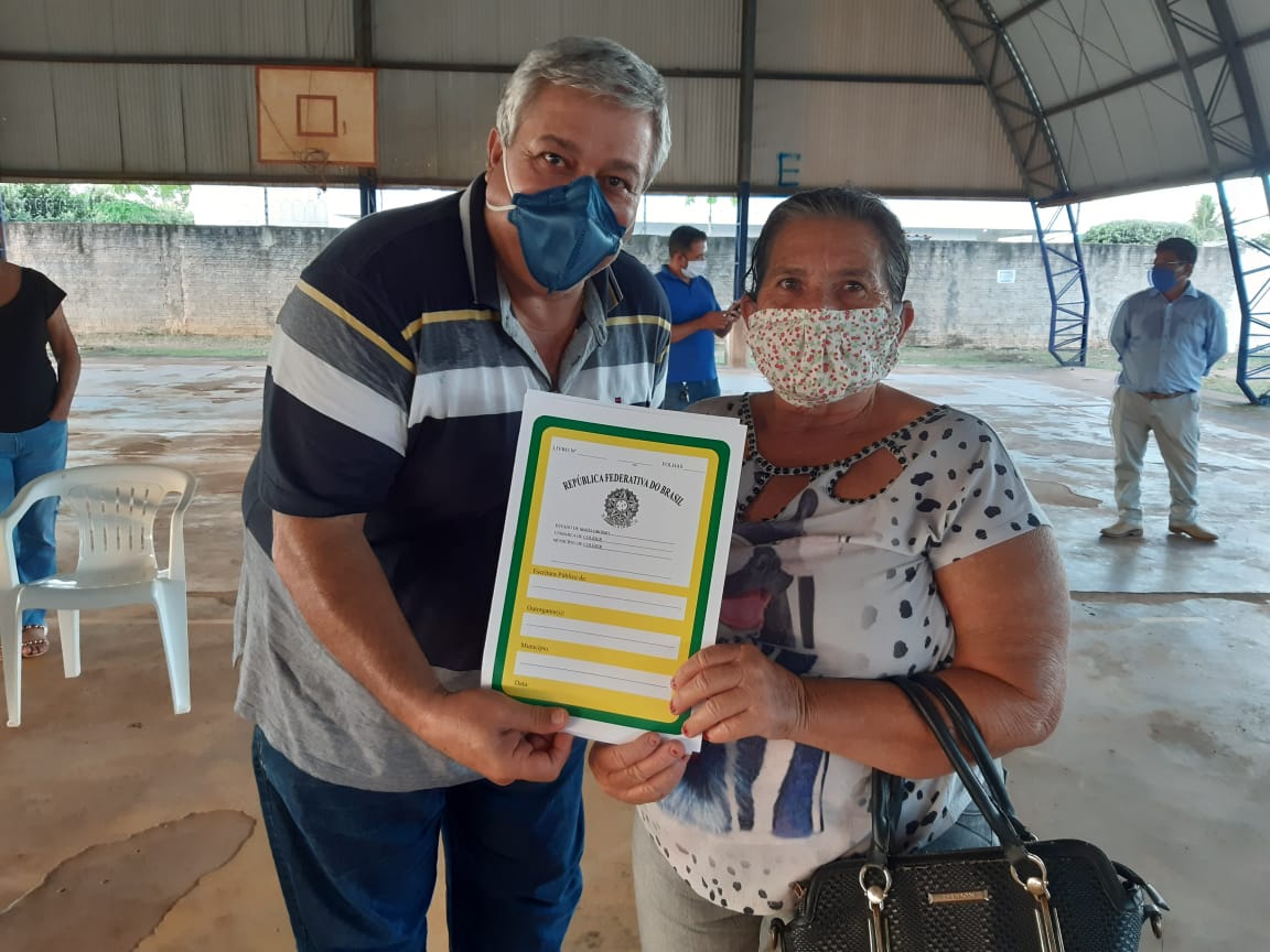 A espera pelo título definitivo de propriedade chegou ao fim para 98 moradores do bairro Maria Antônia. Nesta sexta-feira (05.06), o prefeito de Colíder, Noboru Tomiyoshi, e o secretário municipal de Desenvolvimento Econômico, Ronaldo Vinha, realizaram a entrega dos documentos.